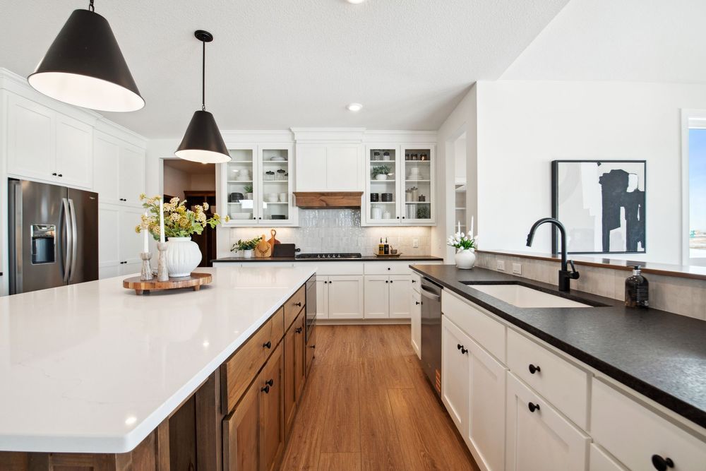 Welcome to the essence of luxury living at OneTenTen Homes’ stunning two-story Brooke Model. This meticulously crafted residence boasts five bedrooms, five bathrooms, and a spacious three-car garage. The heart of the home is the gourmet kitchen, featuring a perfect blend of functionality and style with both a peninsula and island cabinets, complemented by a walk-in pantry with natural light from a perfectly positioned window. The great room is adorned with stained beamed ceilings, and large floor to ceiling windows creating an inviting atmosphere for gatherings. The oversized primary bath is a true retreat, showcasing a lavish walk-in shower. The lower level is an entertainer’s dream, complete with a wet bar, full acoustical slat wall with 78 electric fireplace, and locally crafted custom cabinets throughout. This home is a testament to OneTenTen Homes’ commitment to quality and innovation, offering a seamless blend of modern design and timeless elegance.