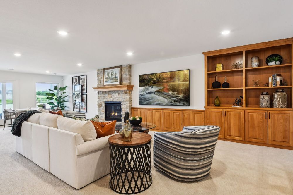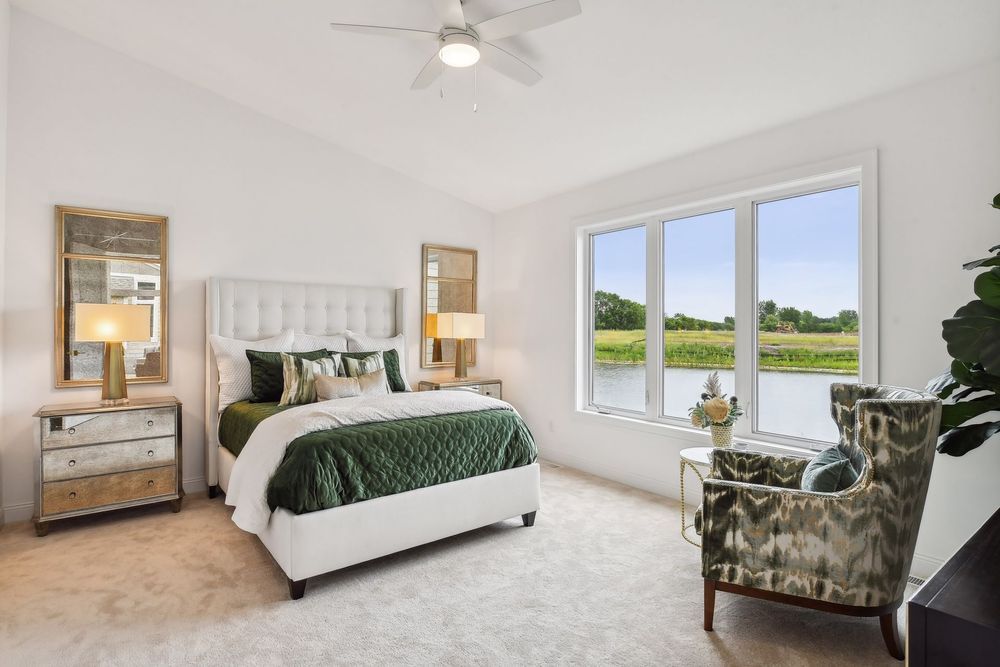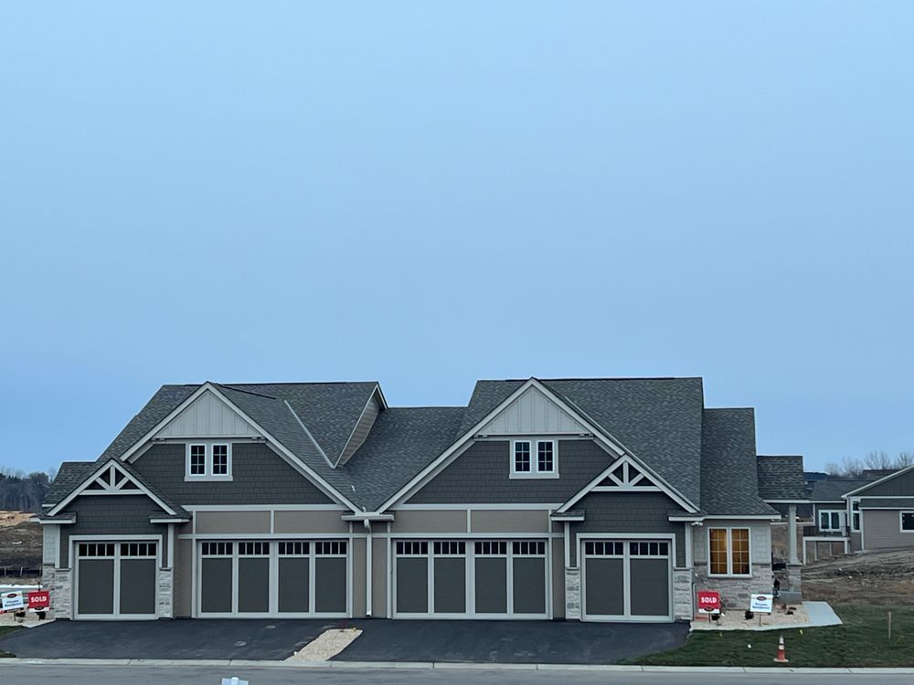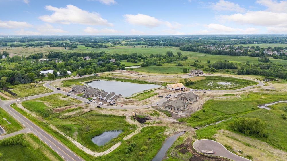 Extensive use of glass creates an abundance of natural light in these spacious and functional, open and airy, Peoples` Choice and Reggie Award-winning walkout rambler townhomes. Located in an amazing development on this serene 76-acre site with numerous wetlands and walking trails, yet close to everything. Home is 3,320 sq. ft. of luxury including main-level owners` suite and connecting laundry, 14`x12` four-season porch, large center island, quartz countertops, oak floors, 4 bedrooms, and three baths. Wide staircase leads to a fully finished walkout lower level with entertainment center, wet bar, fireplace, and covered patio. See our new 3 car garage model, now open for viewing.