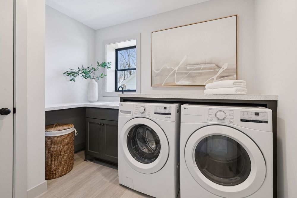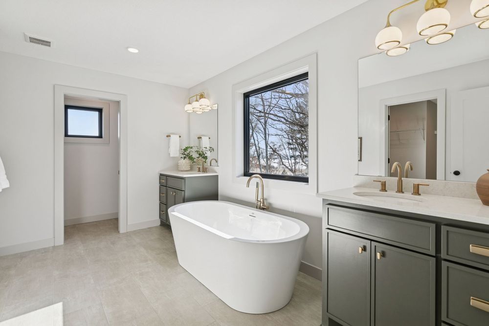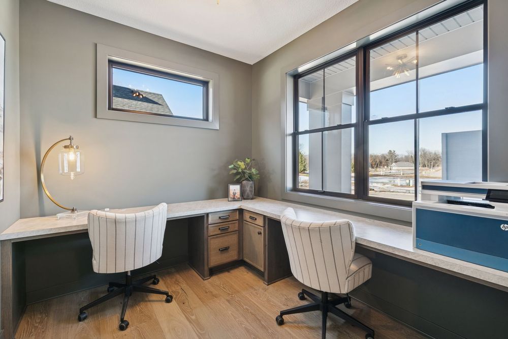 Upstairs, the owner’s suite feels like a private getaway with options for a raised ceiling, extra windows, and a spa-inspired bath featuring a makeup desk, freestanding tub, and spacious shower. The laundry room is conveniently located nearby, and the additional bedrooms are thoughtfully arranged with both shared and private bath access.