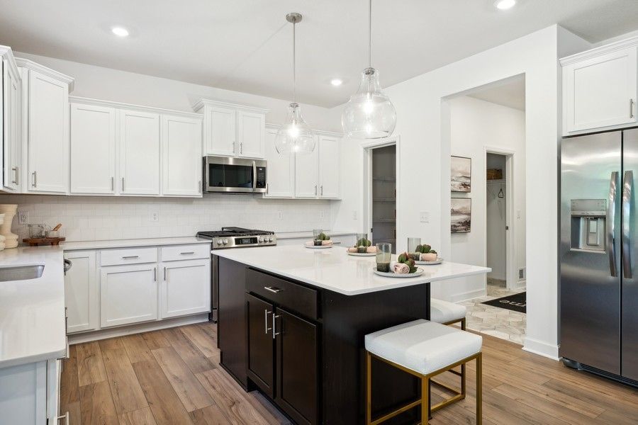 This stunning Lewis model boasts 4 bedrooms, 3 bathrooms, and 2,692 square feet of beautifully designed living space. The open-concept main level features a sun-filled great room and a stylish kitchen with sleek finishes. An informal dining area sets the stage for lively gatherings, while a versatile flex room adds functionality to fit your lifestyle. Upstairs, a spacious loft offers additional living or hobby space, rounding out this home’s perfect blend of comfort and flexibility.