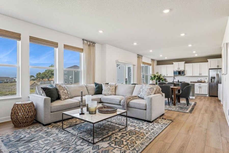 Tour the Burnham—a modern two-story home offering 4 bedrooms, 3 bathrooms, a spacious loft, and a luxurious owner’s suite. With included lawn care and snow removal, everyday living is effortless. The main level features an open-concept design with a generous great room, dining area, and fully equipped kitchen—perfect for entertaining. A three-car garage and an unfinished basement provide added flexibility. Upstairs, you`ll find a versatile loft, three secondary bedrooms, and a private owner’s suite with a walk-in closet and en-suite bath. Located in the master-planned Skye Meadows community in Rogers, MN, the Venture Collection offers single-family homes ranging from 1,830 to 2,553 sq. ft. with 3 to 5 bedrooms and 2 to 3 bathrooms. Residents enjoy HOA-maintained lawns, snow removal, and easy access to I-94, Albertville Premium Outlets, Arbor Lakes, and a variety of outdoor recreation options.