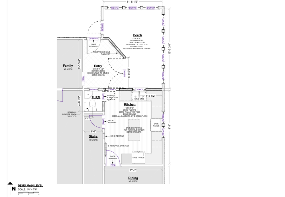 The Challenge The goal of this project was to significantly increase the footprint of the kitchen, powder room and added pantry area by reclaiming an underutilized porch area. By converting the existing porch which was over a crawl space foundation into a fully conditioned living area, we were able to expand the kitchen, add a pantry for storage, add a seating area for entertaining and relocate a once small and awkward powder room into a new central area to the main floor. These changes created a more expansive and functional layout that feels like a natural part of the original architecture and is more proportionate to the rest of the home.