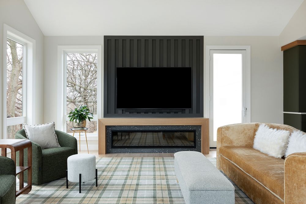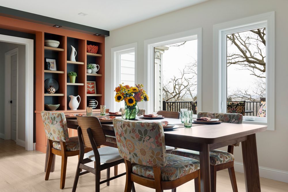 A brand-new family room addition now anchors the home, unifying the interior while highlighting bold color palettes, integrated custom bookshelves, a cozy new fireplace, and a sleek, modern bathroom. To maximize the home`s connection to its environment, we installed high-performance Marvin windows and patio doors. These elegant fixtures not only enhance the home’s energy efficiency and architectural integrity but also perfectly frame the breathtaking, panoramic views of the Minnesota River Valley.