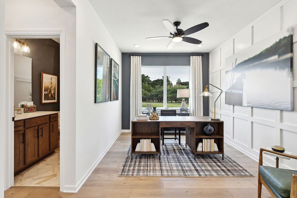 Additional spaces include a bright and functional study with board-and-batten wall detailing, perfect for working from home, and a guest bedroom that ensures visitors feel at ease. Upstairs, a versatile game room delivers even more space for leisure or entertaining.