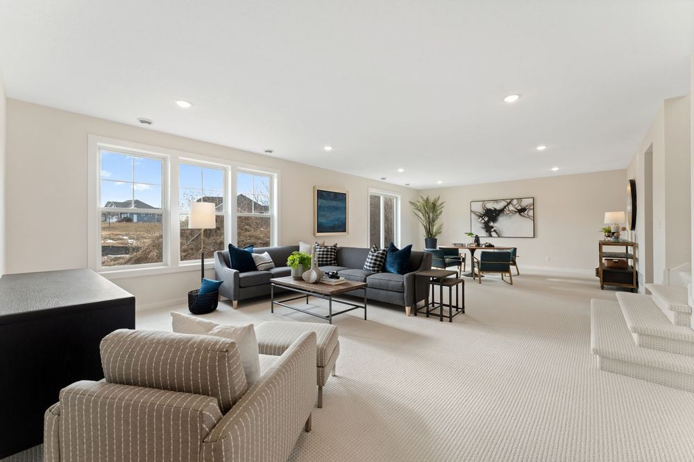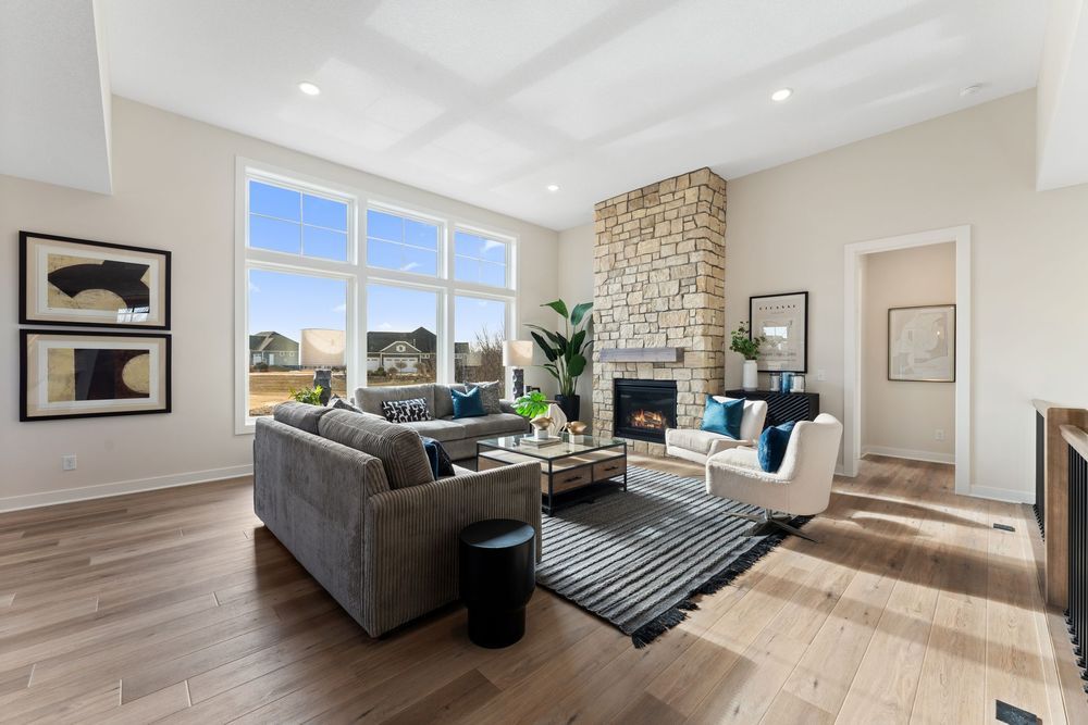 Crafted to captivate, this meticulously designed walkout rambler, developed by the dedicated team at Creative Custom, showcases thoughtful details and exceptional craftsmanship. Featuring four bedrooms and three bathrooms, the home emphasizes main-level livability, providing ample space for entertaining and hosting guests. Nestled on a one-acre lot, the property offers expansive views, generous yard space, and privacy, particularly enjoyed from the screened-in porch and throughout the residence. Natural light floods the interior through oversized windows, creating a bright and airy ambiance, while design elements such as the floor-to-ceiling stone fireplace impart warmth and coziness. The walkout basement defies typical perceptions of a basement with its abundance of natural light, high ceilings, and open layout. This lower level includes two additional bedrooms, a bathroom, a spacious family room, and plenty of storage options. Situated within the Hills of Troy Community, residents benefit from access to private trails, parks, ball fields, and various shared amenities. Conveniently located just minutes from shopping, dining, parks, schools, and all that the St. Croix River Valley has to offer, this home combines luxury with practicality.