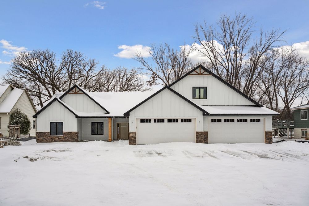 This all-main floor living slab-on-grade floor plan combines thoughtful design, quality craftsmanship, and elegant finishes—all set on a scenic lot along the Mississippi River. The vaulted living room flows into the dining area and a custom gourmet kitchen featuring a large center island with a farmhouse-style sink, a walk-in butler’s pantry, and beautiful White Oak cabinetry throughout the home. The main primary suite offers a spacious walk-in closet and a luxurious full bathroom with a soaking tub and tiled walk-in shower. On the same side of the home, two additional bedrooms share another full bathroom, creating a well-planned bedroom layout. A second private primary suite is located on the opposite side of the home, just off the mudroom—ideal for guests or extended stays. Above the fully insulated 4-car garage is a finished bonus room, perfect for a home office, playroom, or media space. The adjacent loft area includes a fourth bathroom for added convenience. Additional features include 8-foot insulated garage doors, Marvin windows, alder wood accents, granite countertops, and detailed stone and tile work. Just install a garage heater to enjoy the space year-round. With its prime riverfront setting and high-end finishes, this home offers a rare blend of comfort, functionality, and natural beauty all in one easy-living layout.