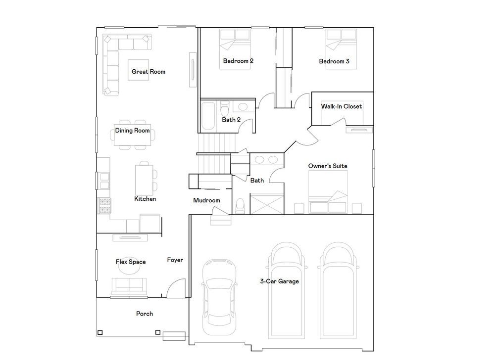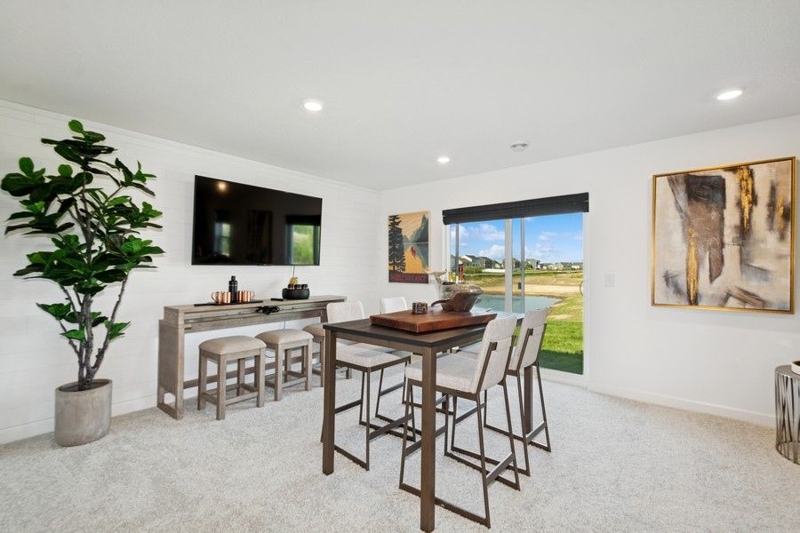 Welcome to Prairie Crossing, where the Courtland II offers a modern two-story design with flexible living spaces and elevated comfort. This thoughtfully designed home features a lower-level recreation room that adds versatility for work, play, or relaxation. On the main level, soaring vaulted ceilings enhance the Great Room and dining area, which flow seamlessly into the stylish kitchen with a center island and a flexible space perfect for a home office or hobby room. Upstairs, you’ll find three spacious bedrooms, including a luxurious owner’s suite with a private bath and walk-in closet, while a fourth bedroom and bathroom on the lower level is ideal for guests. A three-car garage completes this home, offering ample storage and everyday convenience.