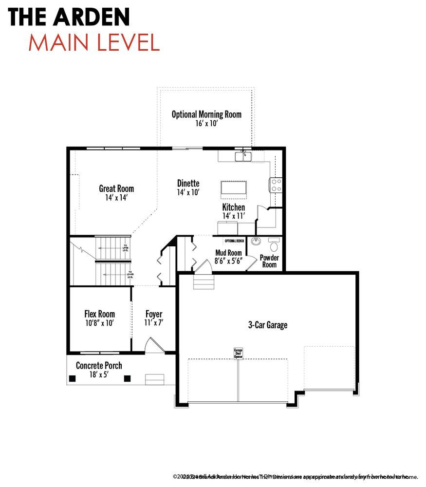 Welcome to The Arden, a beautifully designed home offering over 3,200 square feet of quality craftsmanship and inspiring architecture. This five-bedroom, four-bath home with a three-car garage greets you with a classic front porch and a versatile main-level flex room. Luxury vinyl plank flooring enhances the foyer, great room, kitchen, and dinette, creating a cohesive and elegant living space. The optional upper-level and lower-level morning rooms provide additional square footage, enriching the layout with thoughtful design. The gourmet kitchen showcases quartz countertops, stainless steel appliances, a walk-in pantry, and a generously sized island—perfect for gatherings. Upstairs, the primary suite includes a spacious walk-in closet, along with three additional bedrooms and an oversized laundry room for added convenience. The finished lower level features a fifth bedroom, a three-quarter bath, and a large family room, offering ample space for relaxation or entertaining.