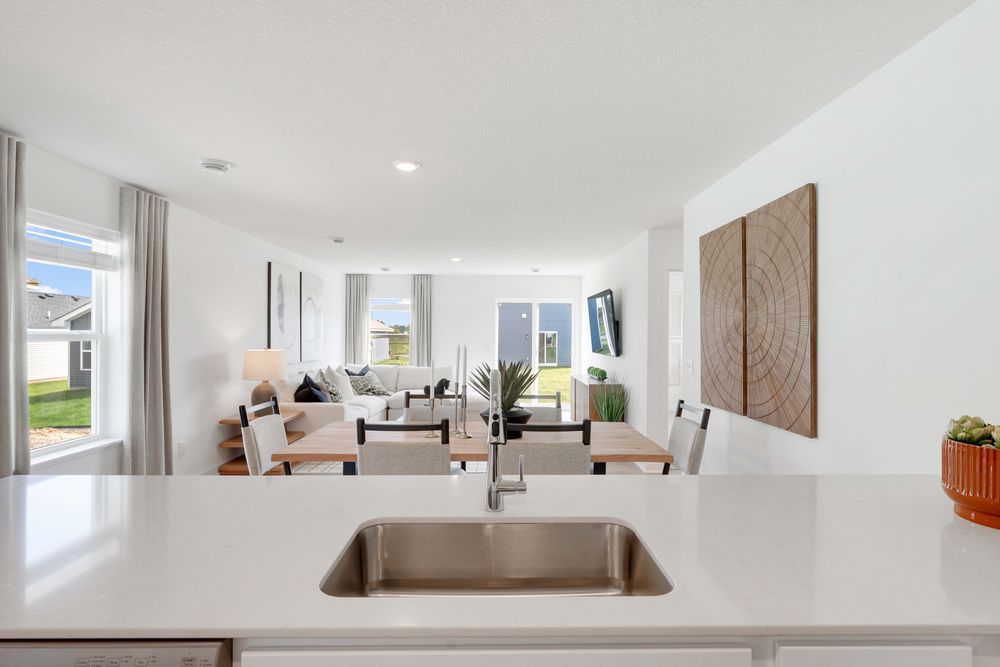 Welcome to Castella Meadows, where the Sibley floor plan combines modern style with everyday practicality in a serene, well-connected community. This single-level design offers an open-concept layout that seamlessly unites a spacious Great Room, a contemporary kitchen, and a bright dining area—perfect for both relaxed living and entertaining. All three bedrooms are conveniently located on one level, including a luxurious owner’s suite featuring a private bath and walk-in closet. Completing the home is a two-car garage, providing added storage and convenience for your lifestyle.