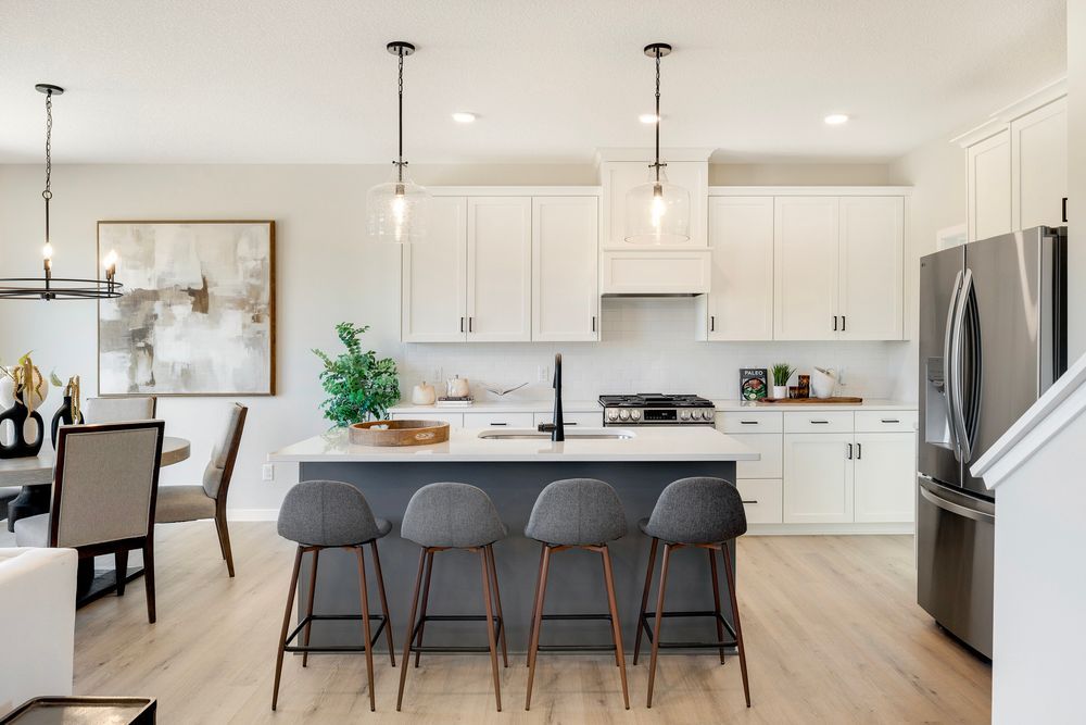 Chefs will enjoy the kitchen, which boasts striking white cabinetry, a contrasting dark-painted center island, and a practical walk-in morning kitchen pantry, complete with a window and custom built-ins. A main-floor bedroom and full bath offer ideal guest accommodations, and the private flex room is a perfect home office. A well-appointed mudroom with a built-in bench leads to the 2-car garage.
