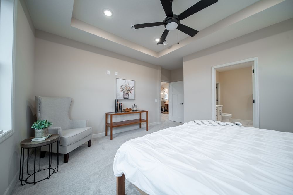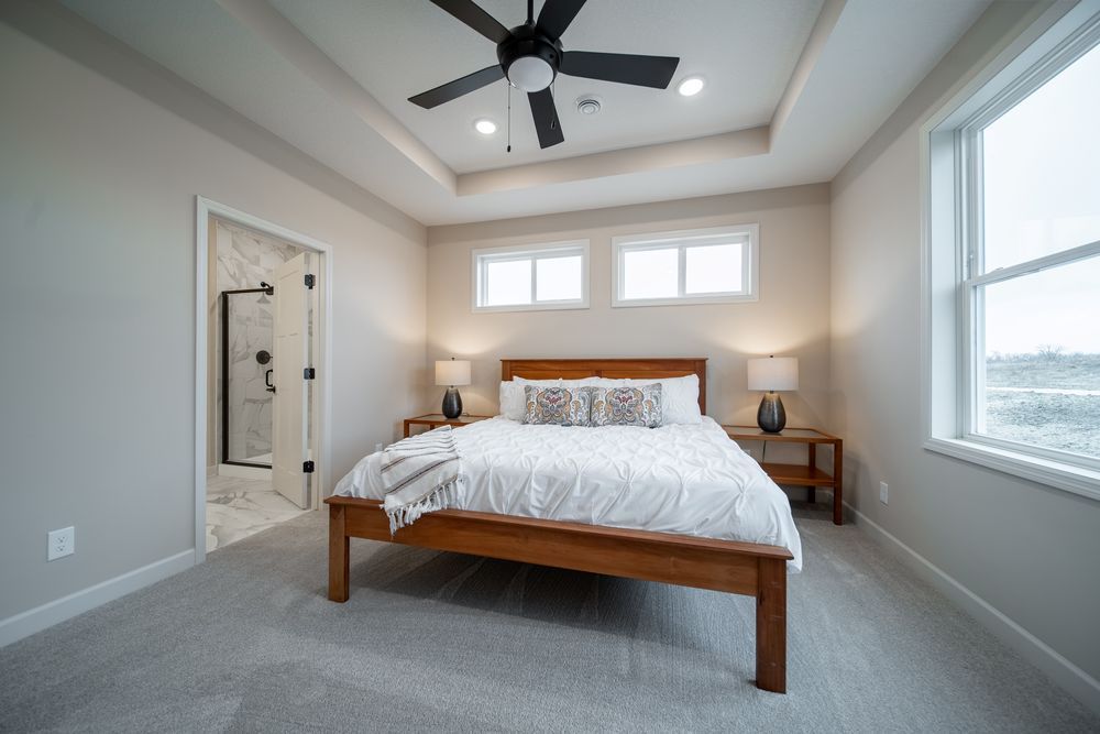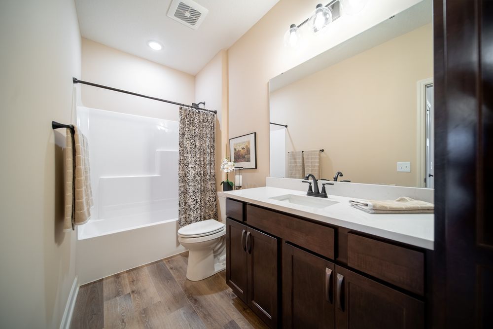 -Owner’s suite features a large walk-in closet and a private bathroom with a quartz double-bowl vanity and tiled shower with separate tub.