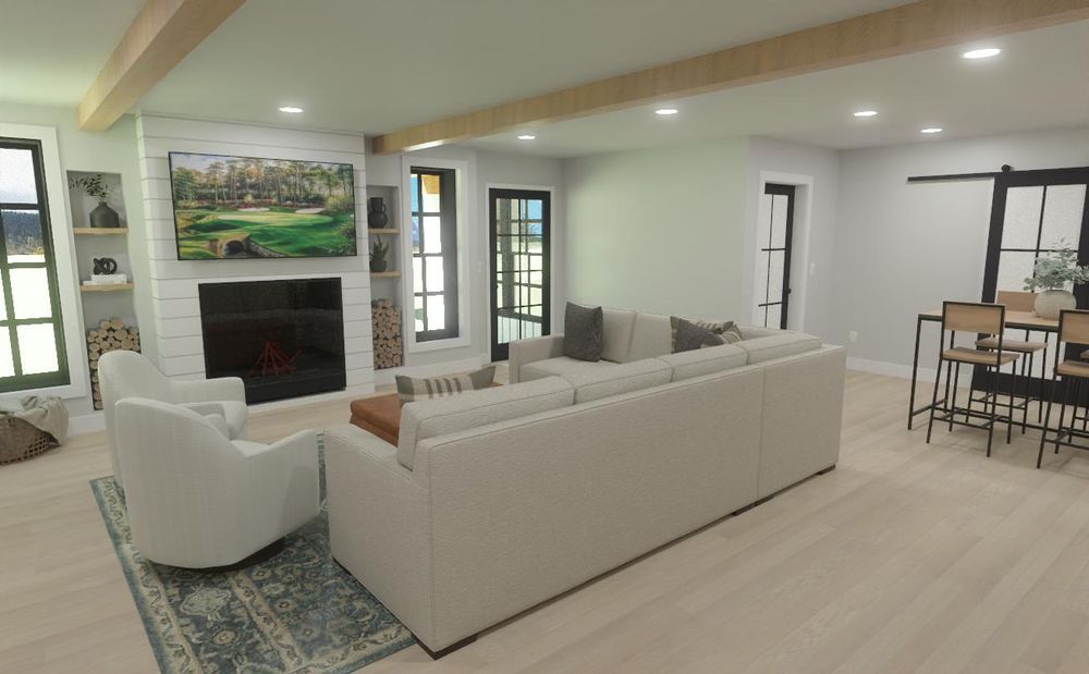 This family completed their home by finishing the lower level to include a family room with bar, home office, exercise room, and bathroom. A four season porch and extended deck were added off the main-level family room, creating a year-round connection to the surrounding open land. Three electric fireplaces add warmth and comfort throughout.