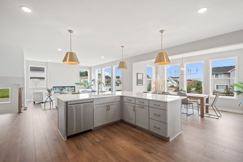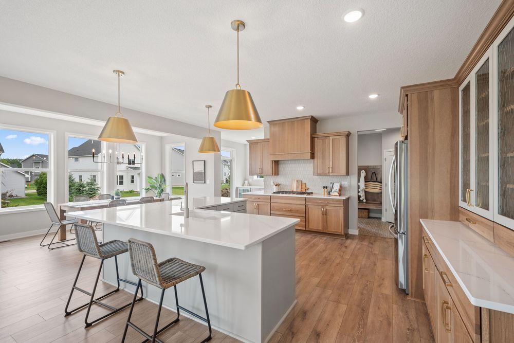 Chef’s Dream Gourmet Kitchen: The heart of the home features an expansive L-shaped island, premium quartz countertops, professional-grade appliances, high-end cabinetry, and ample prep space—perfect for hosting and gathering.