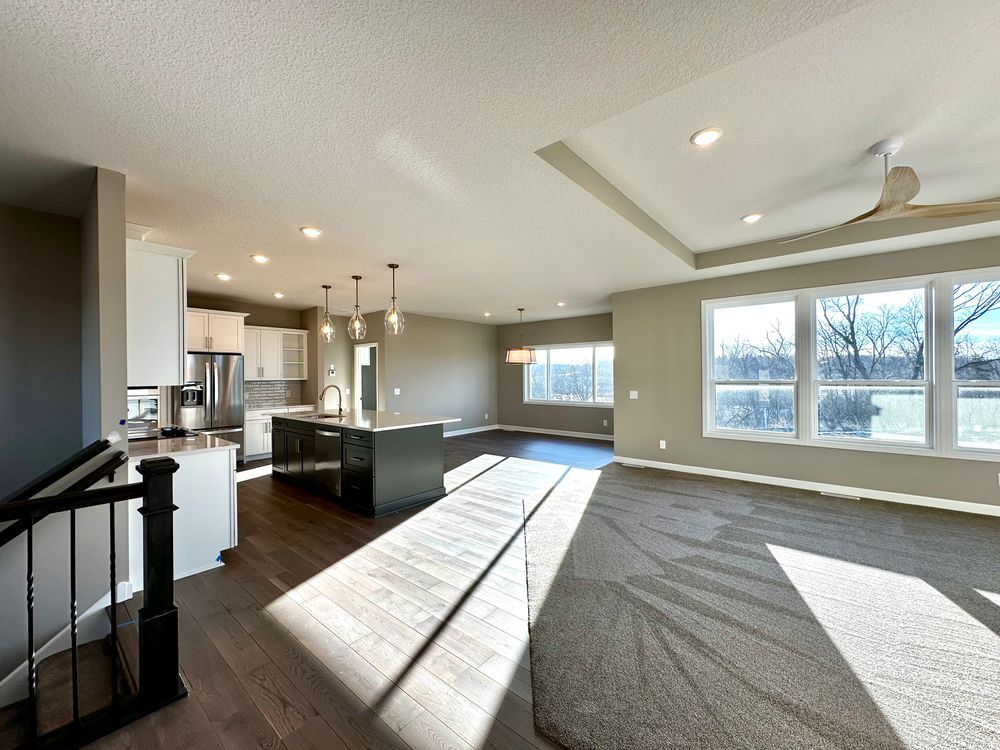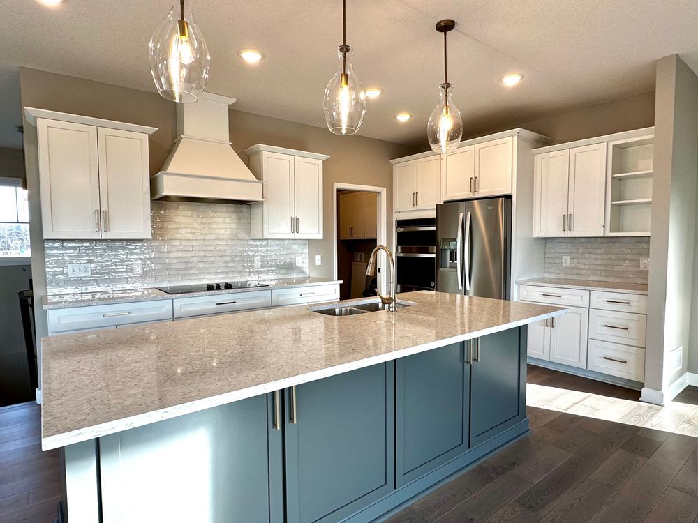 The Montego is a Rambler/ Ranch with finished walkout lower level basement offering a very open concept that is designed for both family and entertainment. It features a wide open great room area with wide windows for sunlit daytime gatherings, a dining room for all occasions and a kitchen for inspired cooking. The kitchen offers a double oven, smooth and sleek cooktop, quartz counters, and painted cabinets.