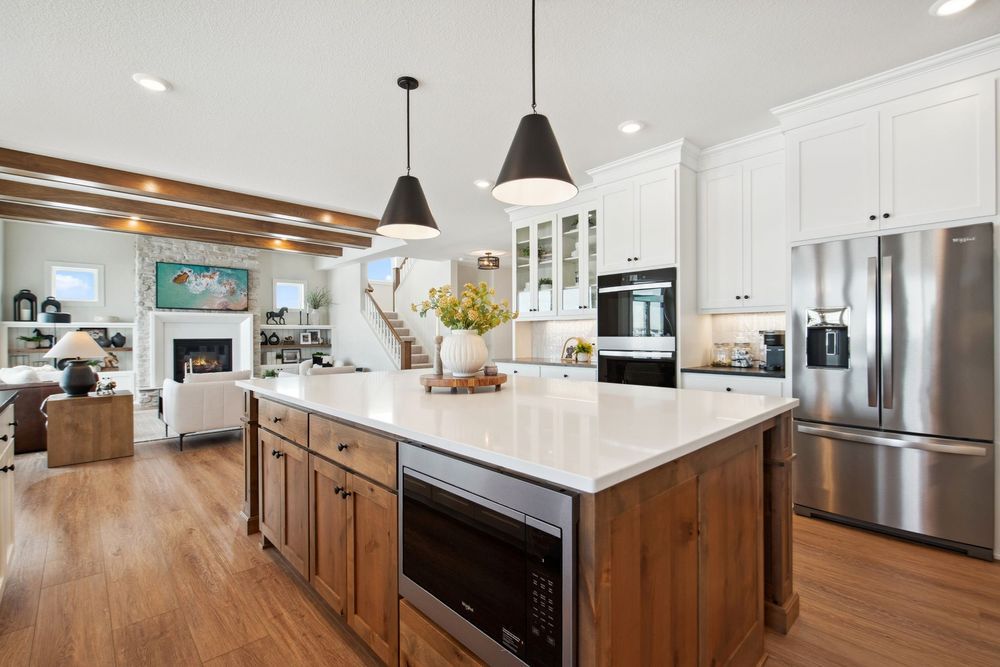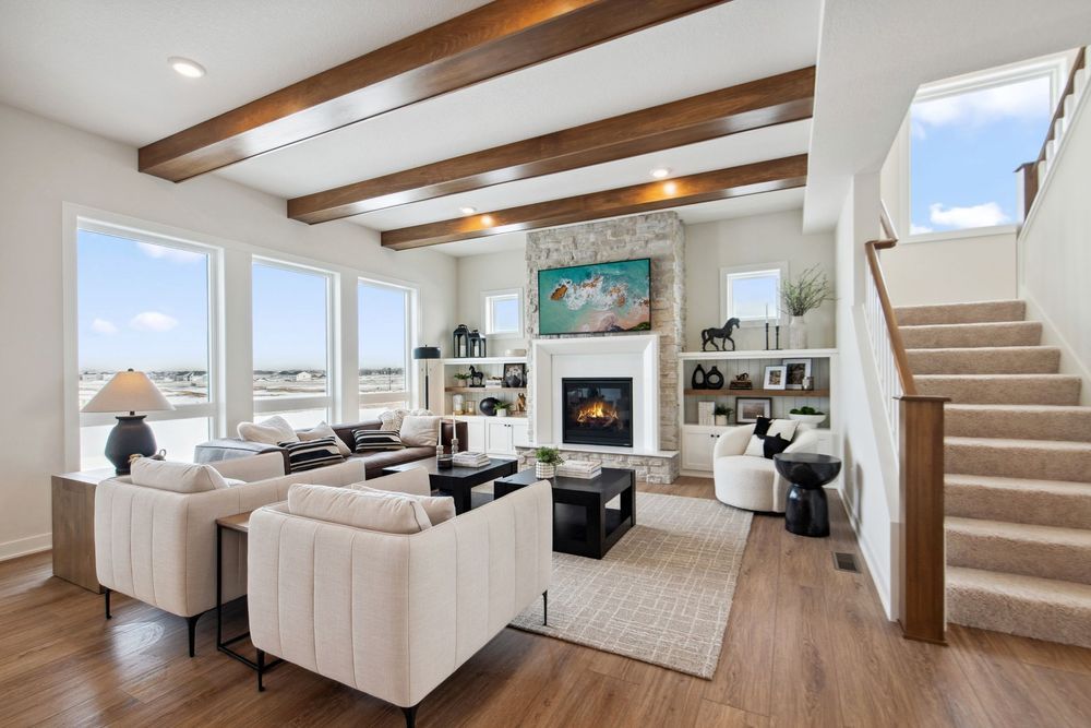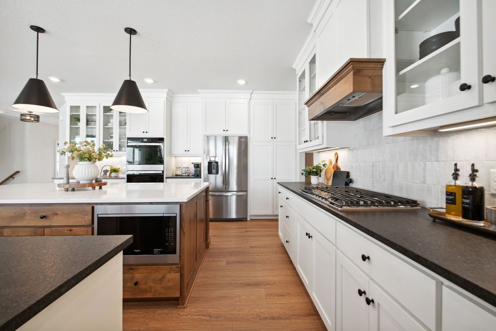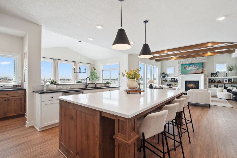 Welcome to the essence of luxury living at OneTenTen Homes’ stunning two-story Brooke Model. This meticulously crafted residence boasts five bedrooms, five bathrooms, and a spacious three-car garage. The heart of the home is the gourmet kitchen, featuring a perfect blend of functionality and style with both a peninsula and island cabinets, complemented by a walk-in pantry with natural light from a perfectly positioned window. The great room is adorned with stained beamed ceilings, and large floor to ceiling windows creating an inviting atmosphere for gatherings. The oversized primary bath is a true retreat, showcasing a lavish walk-in shower. The lower level is an entertainer’s dream, complete with a wet bar, full acoustical slat wall with 78 electric fireplace, and locally crafted custom cabinets throughout. This home is a testament to OneTenTen Homes’ commitment to quality and innovation, offering a seamless blend of modern design and timeless elegance.