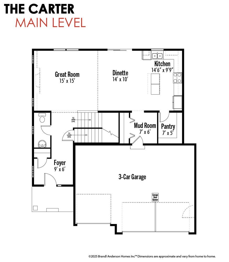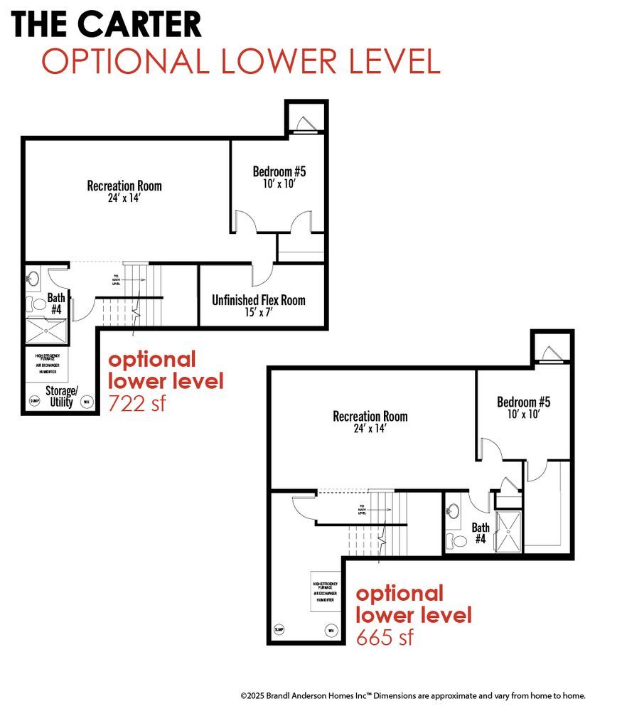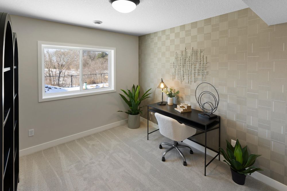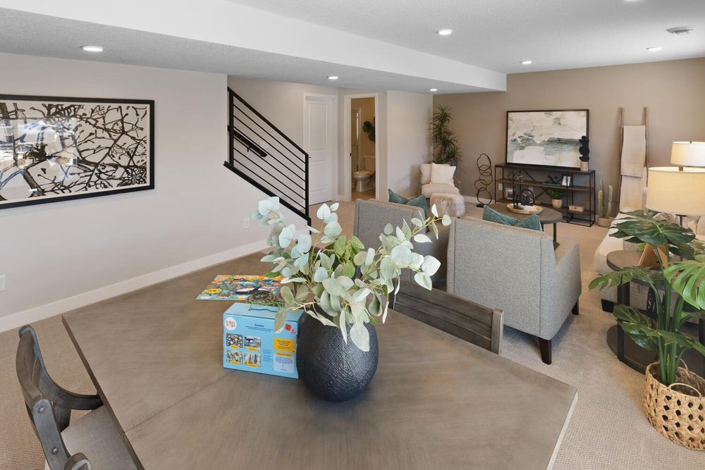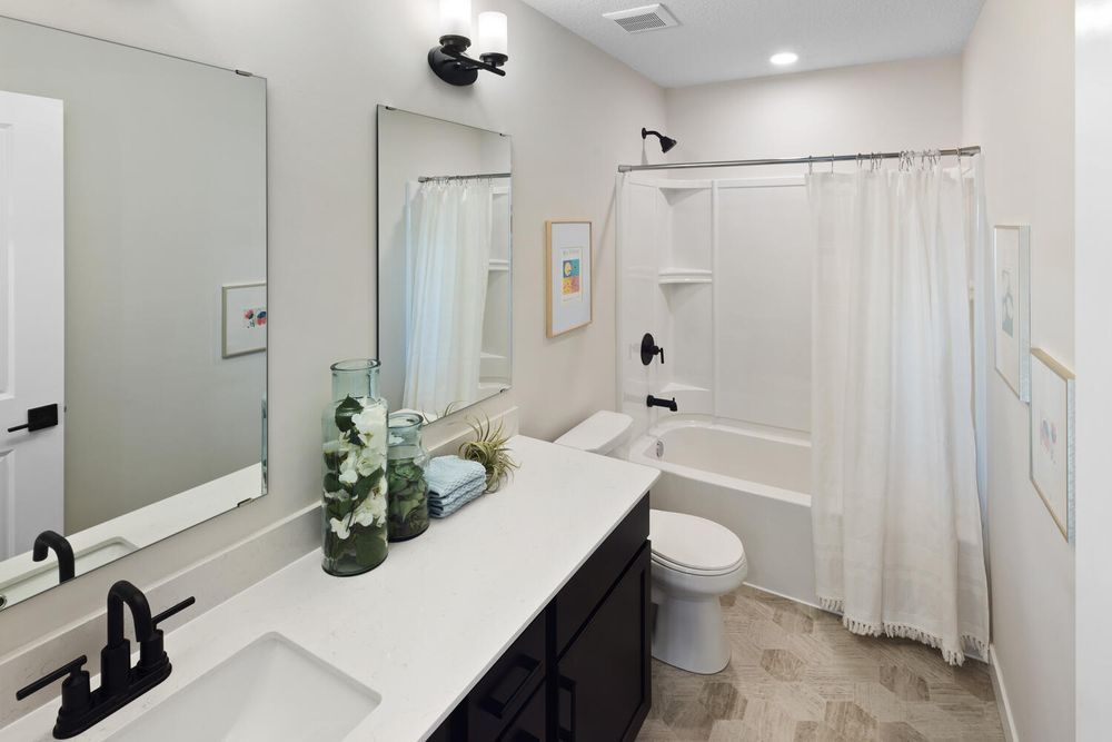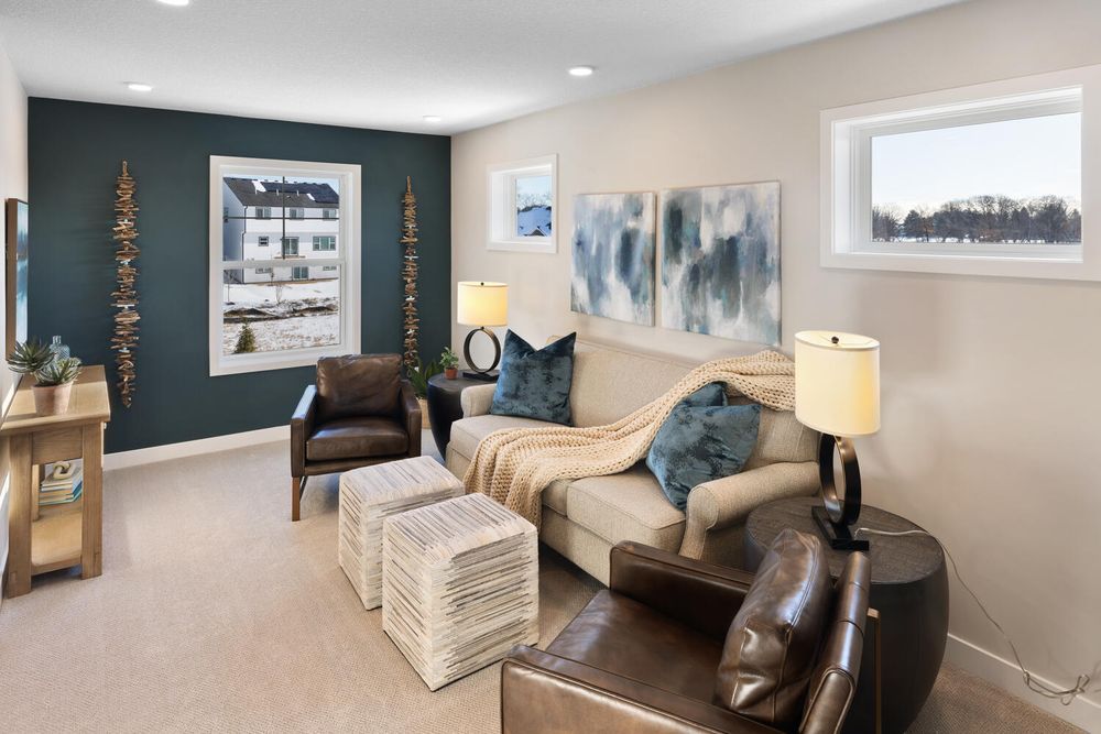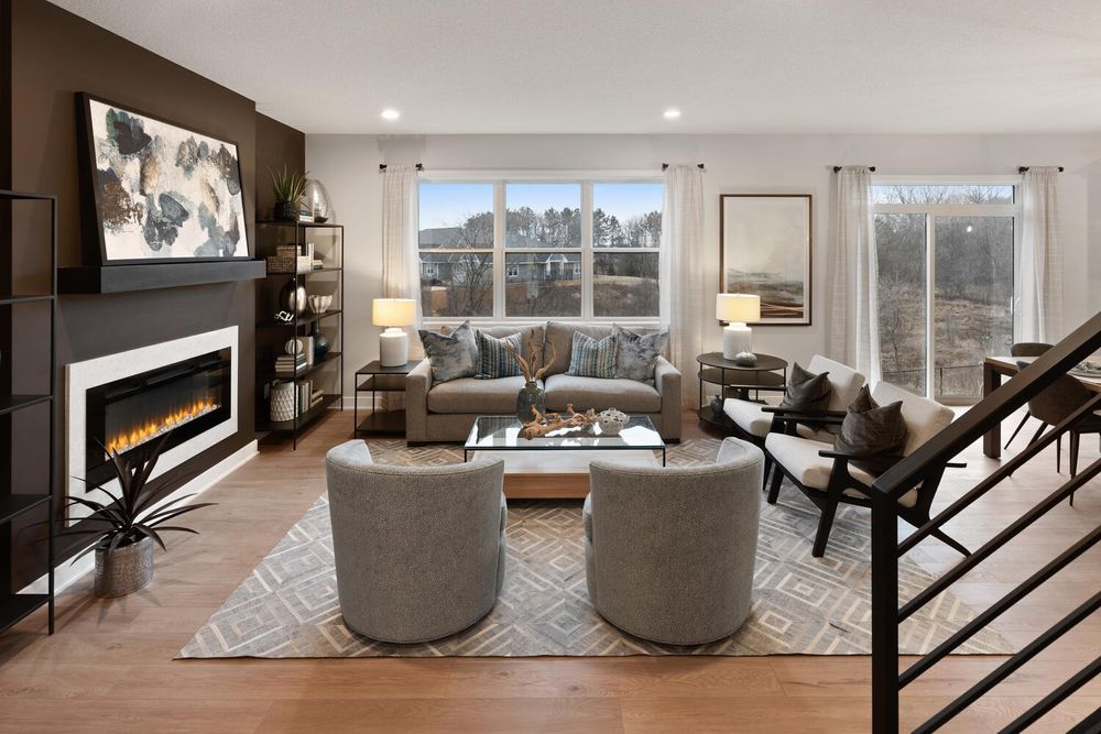 The Carter design offers an expansive open-concept layout that seamlessly blends the kitchen, dinette, and great room, all enhanced by elegant luxury vinyl plank flooring throughout the main living areas. The gourmet kitchen is a standout feature, showcasing premium Frigidaire® stainless steel appliances, quartz countertops, a spacious center island with breakfast bar, and a walk-in pantry for added functionality. Bathed in natural light, the great room provides a warm and welcoming setting, anchored by a cozy fireplace that sets the tone for relaxed living. Upstairs, four generously sized bedrooms, a beautifully finished loft, and a smartly placed laundry room offer a perfect combination of comfort and convenience. The primary suite is a true retreat, complete with a spa-inspired bath and an oversized walk-in closet designed for both style and storage. The finished lower level extends the home’s versatility, featuring a large recreation room, fifth bedroom, multi-use flex room, and a sleek ¾ bath — perfect for entertaining, guests, or everyday enjoyment.