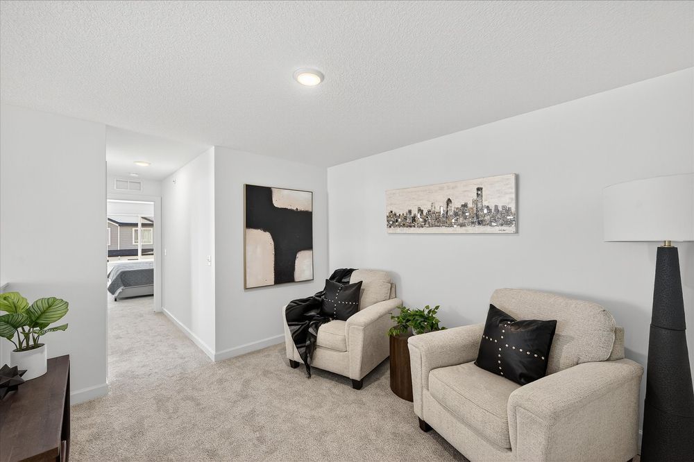 Stunning 2-level end-unit townhome with 2-stall garage! Two Level foyer is a grand entrance to the open-concept living, dining & kitchen layout - perfect for entertaining. Upper level provides four generous bedrooms, a laundry room, and a loft that overlooks the foyer. Kitchen features generous soft-close cabinetry and corner pantry. Stunning lighting fixtures, large windows for natural light & top-quality finishes throughout. Convenient location near shopping & easy access to Hwy 65. *Note: This home will be CLOSED Sunday, April 5th*
