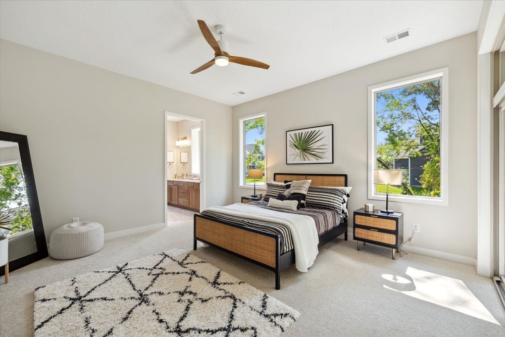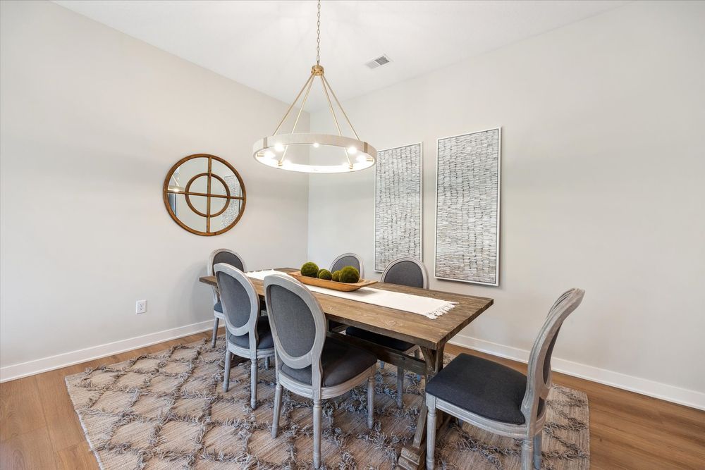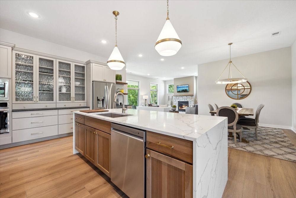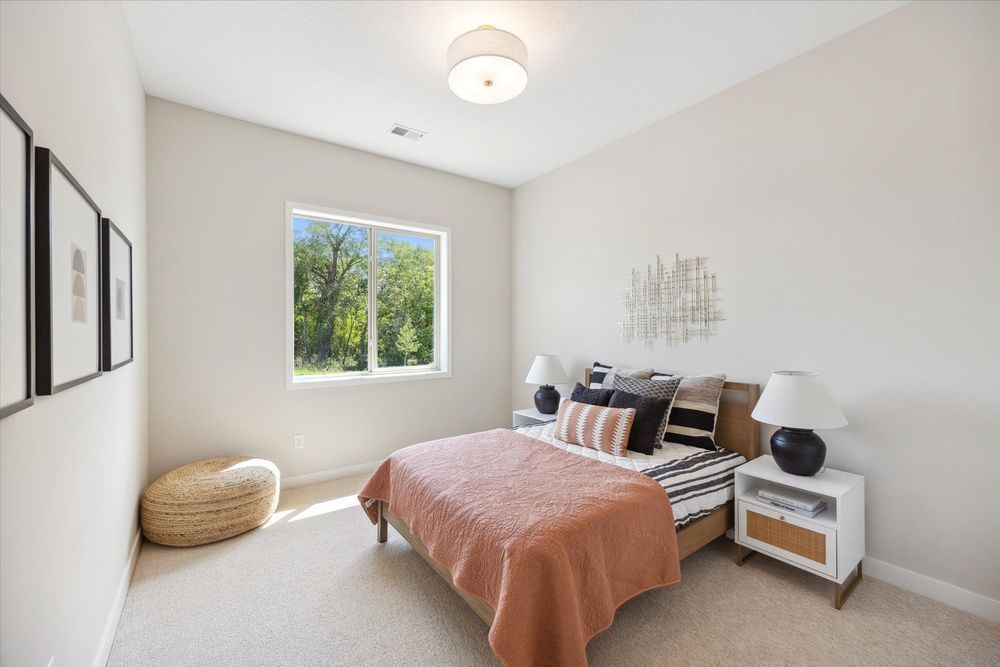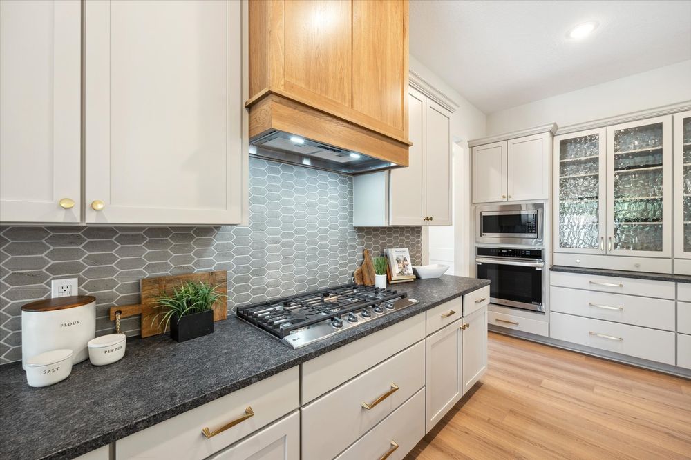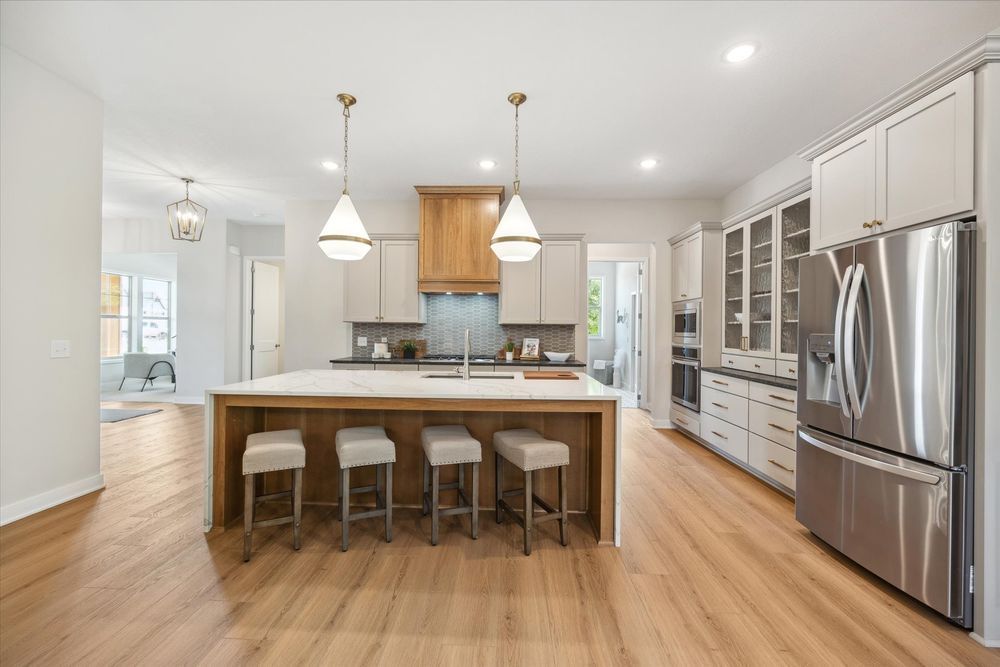 Welcome home to the Legend! One of our most popular single level living floor plans. This home provides every comfort of single family living all on one level with HOA maintenance for your yard and snow removal. Boasting 2,102 square feet of luxury living you will be impressed from the moment you drive up. You will enjoy having covered patio space at both the front and the back of the home. The front patio is perfect for welcoming guests and enjoying the community. The back covered patio can be accessed from the living room or through the owner’s suite. This space provides a little oasis to enjoy morning coffee, a good book, or just sit and listen to nature. Entering the spacious foyer of the home you are also greeted by a flex room that can serve as a home office, den or even a third bedroom if needed. As you flow into the open kitchen you will pass a full guest bathroom and the entrance to the guest bedroom. The kitchen in this home is spectacular. It is anchored by a large and functional island that makes a statement with a dramatic waterfall countertop. The gourmet appliances, hood vent, and ample counterspace make this kitchen a chef’s dream. There are also special touches like glass hutch-like cabinets for displaying special items. Just off the kitchen is a spacious dining room that flows into the living room. The living room centers on a gas fireplace with beautiful stone and a barnwood mantle. This is the best place to cozy up on chilly evenings. The windows on the back wall of the living room are stunning and give an indoor-outdoor feel to the space. At the rear of the home you will find the owner’s suite retreat, with connect ensuite bathroom and walk-in closet that also provides convenient access to the laundry room. Every detail has been considered for easy lifestyle living.