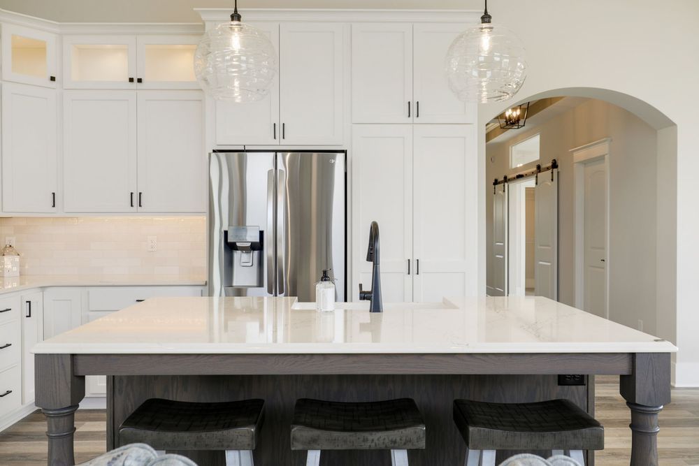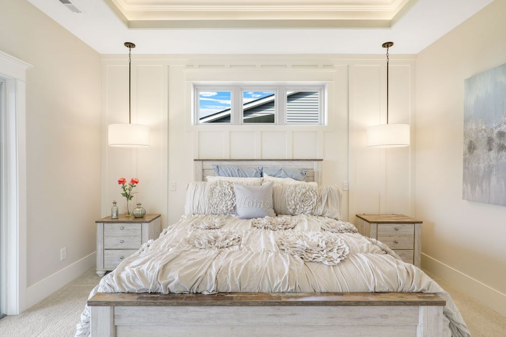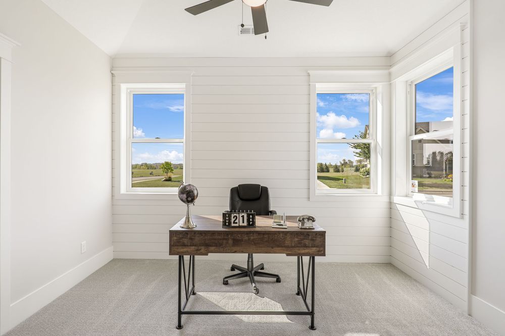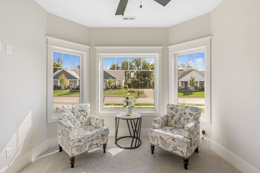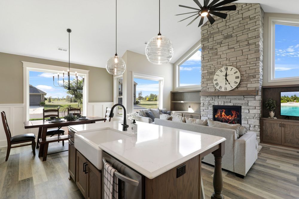 Luxury Downsizing! This is one level living at its finest! This award-winning home has 3 Bedrooms, 2 Bathrooms, Andersen Windows, in floor heat, 11` walls and vaulted ceilings to create an open Great Room, a large island, Cambria countertops and a hidden walk-through hidden pantry! The Owners bedroom has access to the rear covered patio and has a barrier free shower. The 3rd bedroom is shown as a flex room with vaulted ceilings, and barn doors. The oversized 2-car garage, finished with in floor heat can be used as a party room. Come see the different home styles from large single-family homes to association maintained twin homes and many one level living options.