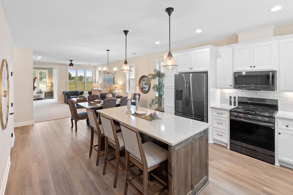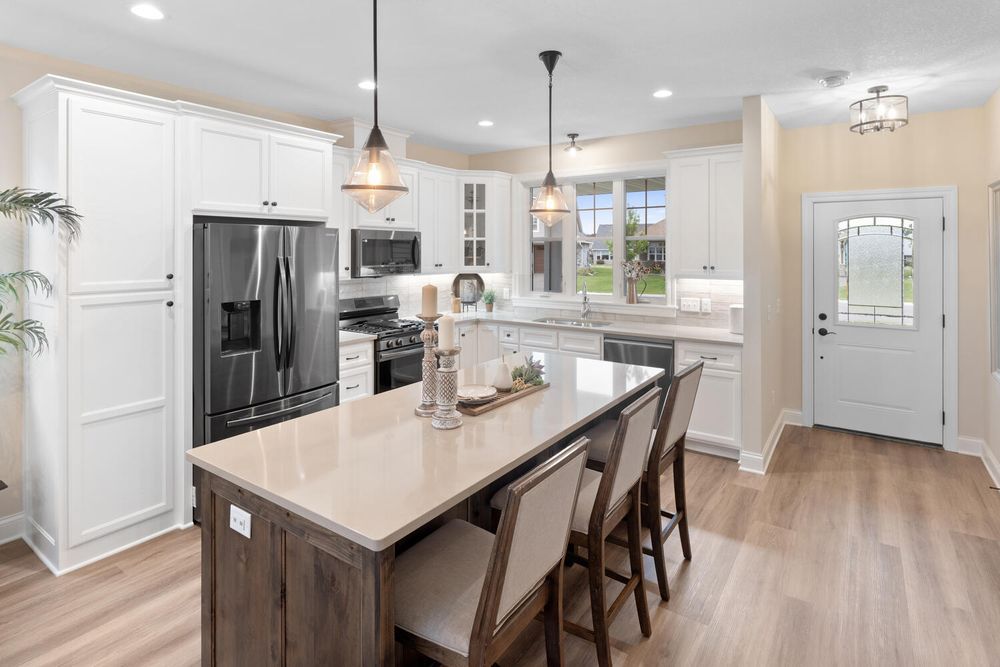 Discover the 55+ Heims Lake Villas North, an association-maintained community of luxury, detached villas by Guidance Homes, Inc., offering stunning views of Heims Lake. Enjoy easy access to I-35 and Fairview Hospital, just half a mile away. This custom-built, slab-on-grade villa (no stairs) features an open floor plan, private owner`s suite with walk-in closet, second and third bedrooms, a bright sunroom, private rear patio, and covered front porch. Additional amenities include in-floor heat and an insulated, oversized two-car+ garage with storage above.