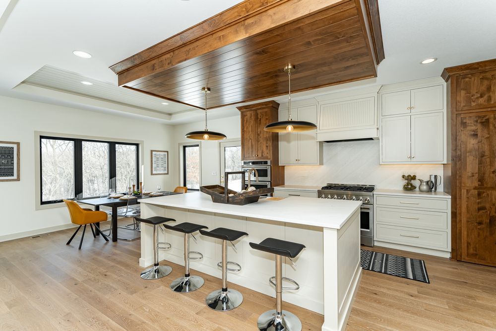 Nestled in Century Valley, this 4-bedroom, 4-bath custom home (3,705 sq ft) blends modern luxury with everyday comfort. The residence sits on 0.55 acres and greets you with a bright open-concept main level featuring vaulted ceilings and expansive windows. A dramatic floor-to-ceiling stone gas fireplace anchors the great room, while the adjoining chef’s kitchen boasts quartz countertops, custom cabinetry, premium appliances and a walk-in pantry. The main floor also includes a dining area, office and a screened porch that opens to a composite-decked patio. The primary suite is an owner’s retreat with a spa-like bath offering dual vanities, a tiled walk-in shower and a generous walk-in closet. Three additional bedrooms—one on the main level and two in the finished lower level—are thoughtfully designed for comfort. Downstairs you’ll find a spacious family room with a custom wet bar, creating the perfect setting for entertaining or movie nights. Two fireplaces, central air, forced-air heating and energy-efficient appliances enhance year-round comfort. Outside, mature trees and landscaped grounds provide privacy and curb appeal. The heated three-car garage features EV-charging and storage space. Located minutes from top-rated schools, parks and downtown Rochester, this property offers upscale finishes and functional design in one of Rochester’s premier neighborhoods.