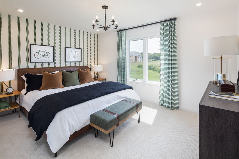 The Amelia is a one-story home with an open layout, warm wood tones, and stunning finishes throughout. The main level has 3 BR and 2 BA with an additional BR, BA, and rec. room in the lower level.