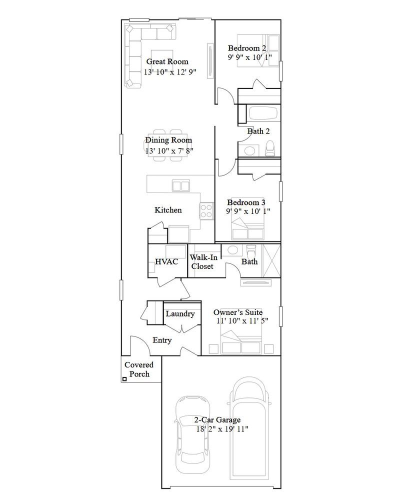 Discover the charm of Castella Meadows, where the Sibley floorplan offers a perfect balance of style and practicality in a peaceful, well-connected neighborhood. This thoughtfully designed single-level home features an open-concept layout that brings together a spacious Great Room, a sleek modern kitchen, and a welcoming dining area—ideal for both daily living and entertaining guests. All three bedrooms are conveniently located on one level, including a luxurious owner’s suite with a private bath and walk-in closet. A two-car garage adds extra convenience and storage to this beautifully crafted home.