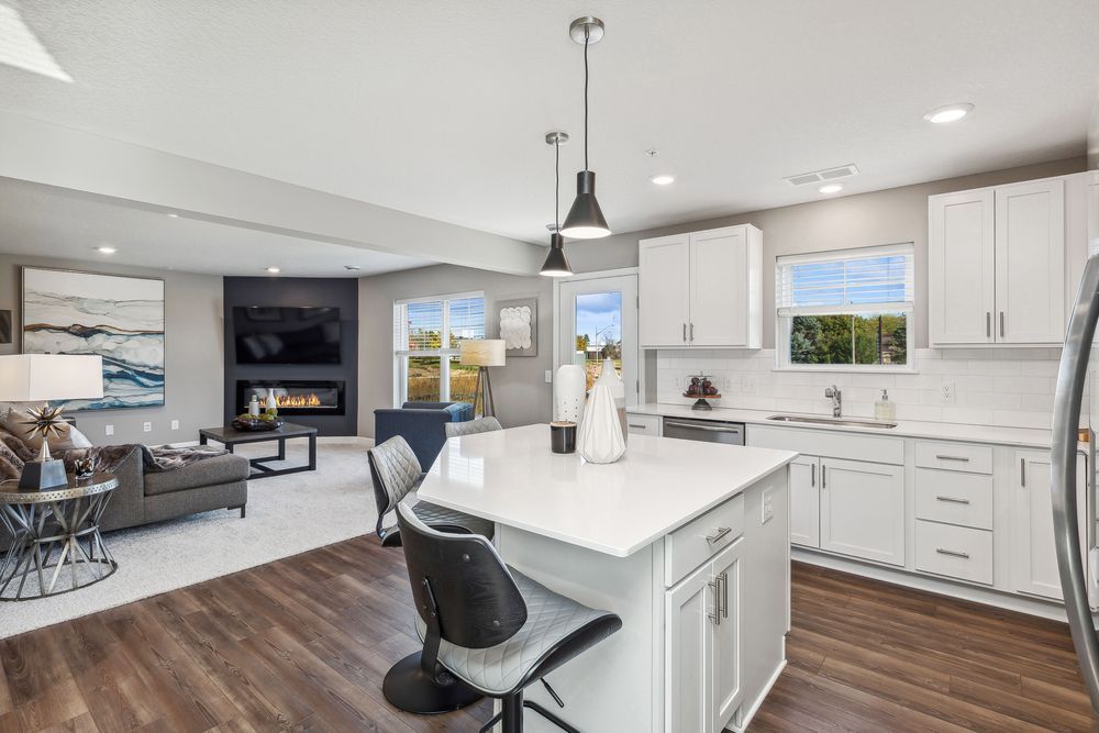 One standout home in this community is the Jefferson, an elegant end-unit design from the Colonial Patriot Collection. This thoughtfully crafted two-story floorplan offers an open-concept main level featuring a welcoming foyer, a stylish dining room, a stunning kitchen, and a spacious great room complete with a cozy fireplace. Upstairs, the Jefferson provides a versatile loft, a luxurious owner’s suite with a private bath and walk-in closet, and two generously sized secondary bedrooms. With its family-friendly layout and exceptional location, the Jefferson at Vermillion Commons offers the perfect blend of comfort and convenience for your next chapter.