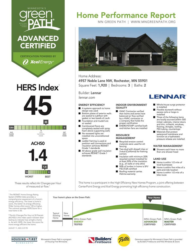 Thoughtfully designed for effortless living and entertaining, this stunning one-level home features a spacious open layout that brings people together. At the heart of the home is an upgraded gourmet kitchen, perfect for cooking and hosting with style, seamlessly flowing into a generous Great Room ideal for gatherings and celebrations. The dining area offers the perfect setting for memorable meals, while the secondary bedrooms provide comfortable accommodations—one of which is positioned at the front of the home, making it an excellent option for guests. Additionally, the versatile lower level offers the opportunity to create a personalized recreation room, adding even more space for relaxation and enjoyment. Rochester offers a peaceful lifestyle with access to urban amenities, including fantastic shopping, dining and entertainment options. Residents can indulge in a day on meticulously maintained greens at the nearby Northern Hills Golf Course or venture to nearby parks and trails for more outdoor fun.