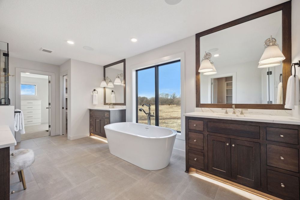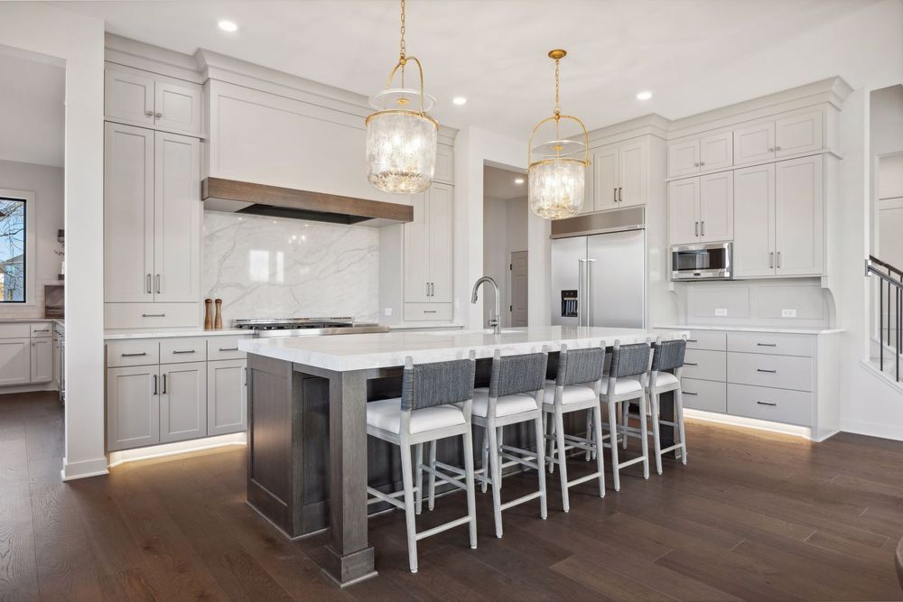 Hanson Builders new Brentwood plan is a must see. You`ll immediately notice the open and spacious main level with 10` smooth ceilings and LED strip accent lighting in the Great Room. The home includes black Marvin windows and showcases a modern surround fireplace with wood shelves and accent lighting. The custom designed kitchen includes a 48 range, built-in dinette bench, and large prep kitchen. The sunroom is the perfect retreat to enjoy your morning coffee or cozy up with a good book! The upper level features a vaulted Bonus Room, 4 Bedrooms, private Owner`s Suite with dual closets and spa-like bathroom with walk through to Laundry. The finished lower level includes a Sport Center, family room with built-in entertainment wall, Wet Bar/Games area and 5th bedroom. The home also includes a 4-car garage heated garage with floor drains.