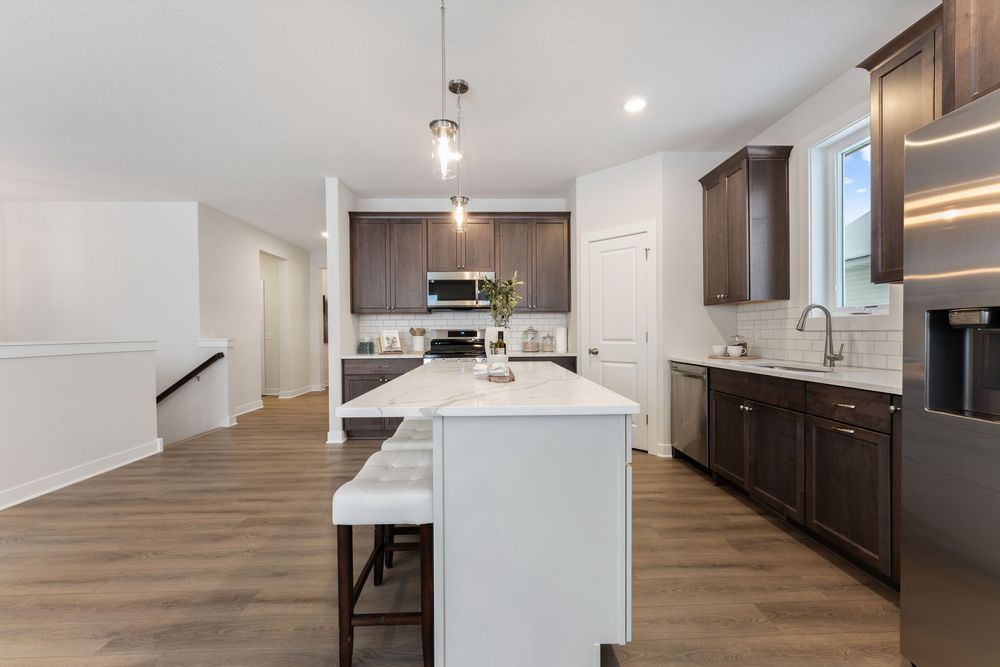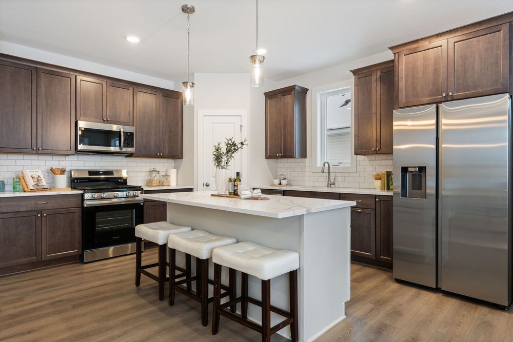 The Sully is a striking single family home designed with walls of glass, incredible natural light, and a modern layout perfect for family living. Step into the welcoming foyer, where a den and staircase set the tone for the thoughtful design ahead. At the heart of the home, the great room, kitchen, and dining area connect seamlessly with a gas fireplace, creating an open and inviting space. Just off the kitchen, a private hallway leads to the mudroom, powder bath, and pantry, offering both function and privacy within the open layout. Upstairs, the primary suite is joined by three additional bedrooms and a conveniently located laundry room, while the lower level expands your living space with a large family room and a fifth bedroom ideal for guests or a home office. Located in Trott Brook Crossing, this home offers the perfect blend of peaceful surroundings and everyday convenience, with scenic views, nearby parks and trails, and easy access to shopping, dining, and major roadways, making it an exceptional place to put down roots and truly feel at home.