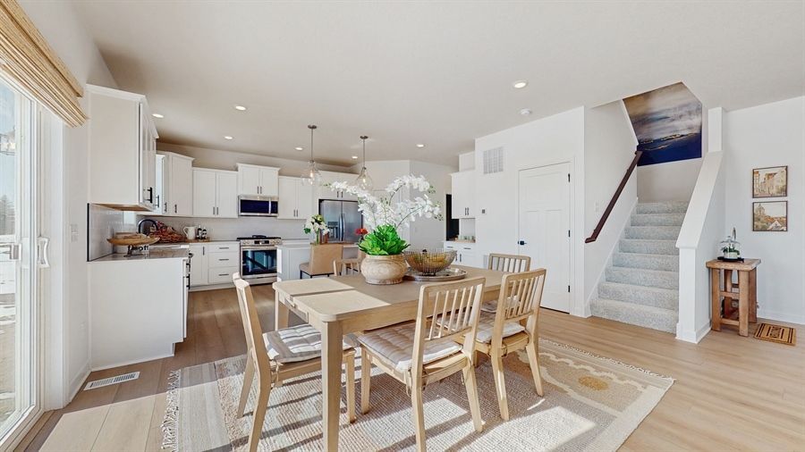 This new two-story home is a family-friendly haven, thoughtfully designed with an open-plan layout that seamlessly connects the Great Room, dining room, and kitchen, creating a perfect space for gathering and entertaining. A first-floor flex room adds versatility, serving as an ideal home office or additional living area. Upstairs, the home features three secondary bedrooms and a spacious owner’s suite, offering comfort and privacy for the entire family. Located just 30 minutes outside the Twin Cities metropolitan area, Elko New Market combines a peaceful country setting with convenient amenities, including local parks, shops, and unique entertainment options. Residents can tee off at Boulder Pointe Golf Club or enjoy exciting events at the Elko Speedway & Drive-in Theater, making this community a delightful place to call home.
