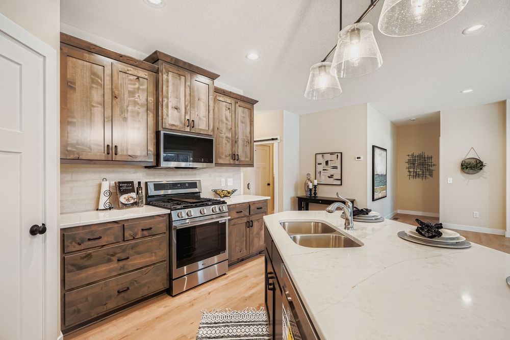Introducing a stunning 3 bed, 2 bath detached villa in the heart of Wyoming built expertly by Caliber Homes, a Reggie Award winning custom MN home builder! This beautiful home offers 1,713 square feet of luxurious, one-level living with an open concept design. The spacious living room features a large electric fireplace accented by a shiplap wall, creating a cozy yet modern ambiance. The sun-drenched porch leads out to a concrete patio, perfect for summer gatherings. The villa features 9-foot ceilings, a gorgeous kitchen with granite countertops, ample cabinet space, and a beautiful center island. It includes 3 bedrooms, with the primary bedroom featuring an en suite ¾ bathroom with a ceramic walk-in shower and dual vanity. Additional features include a crawl space for extra storage and a three-stall garage. Located in the Katie`s Glen neighborhood, just blocks from Goodview Park. 39 units available! Secure yours today!
