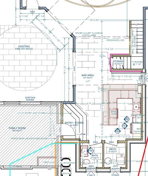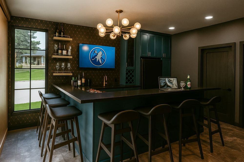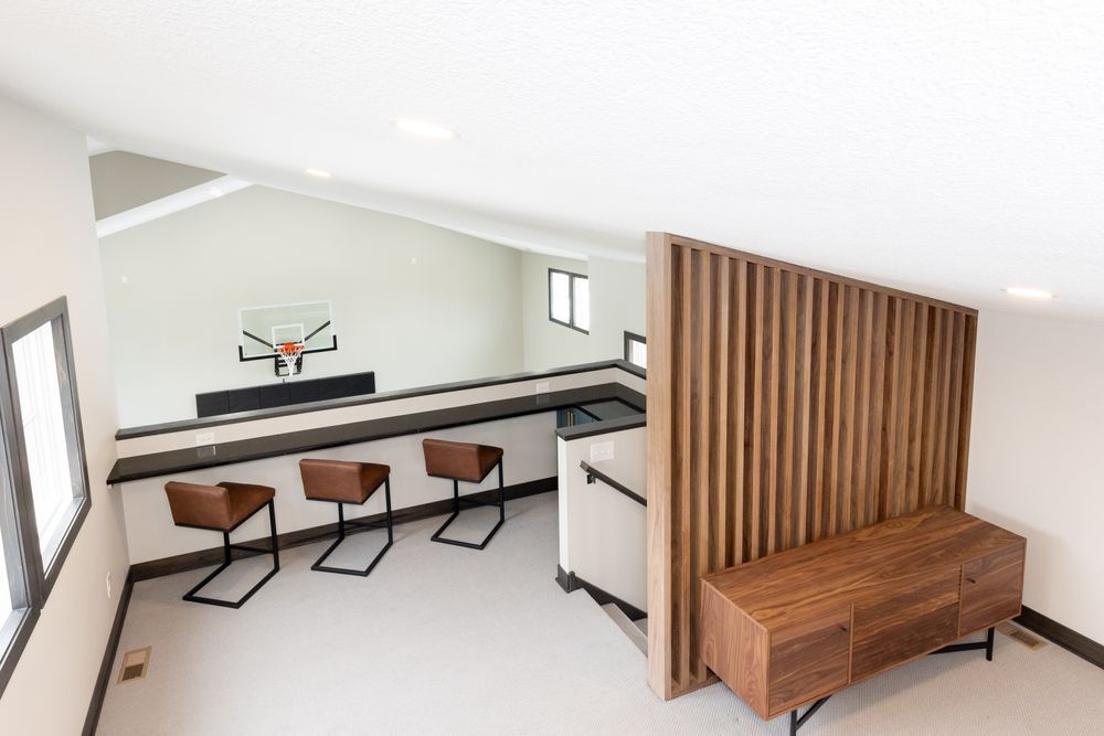 Because the home is a lookout rather than a walkout, access and flow were key challenges we solved together. After exploring multiple entry options, the final connection was made through the media room, preserving essential mechanical systems. To align the court with the patio level, a custom stair system was designed to create a natural and intuitive transition.