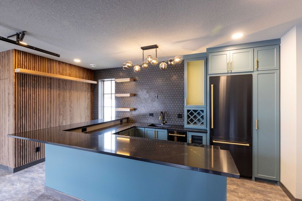 One of the most exciting aspects of this project was the opportunity to create an atmosphere entirely its own. Distinct materials, layered textures, dramatic angles, and custom details, including a hidden door, set this space apart from the rest of the home, making it a destination built specifically for this family’s lifestyle.