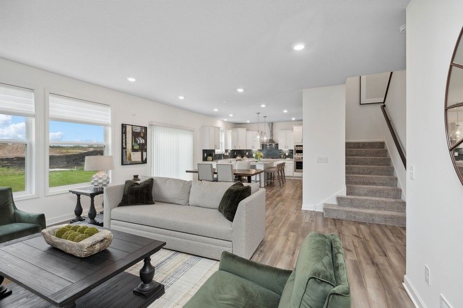 Welcome to Timber Creek Discovery, a charming community of single-family homes in Carver. Explore the stunning Lewis model, featuring an open-concept design with a spacious kitchen overlooking the dining and great room, plus a versatile flex room. Timber Creek Discovery offers access to shopping and dining in Downtown Carver, along with community amenities like a basketball court and soccer field. Choose from seven unique floor plans ranging from 1,920 to 3,078 sq. ft., with 3-5 bedrooms and 2-3 baths. The Lewis model welcomes you with a covered front porch leading to a foyer and flex space. The main level includes a spacious family room, open dining area, and a well-appointed kitchen. Upstairs, enjoy a luxurious owner`s suite with a walk-in closet and private bath, three additional bedrooms, a full bath, and a convenient laundry room, blending style and functionality for modern living.